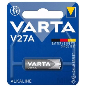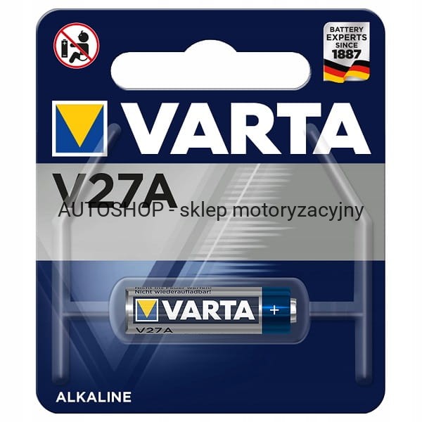 Bateria alkaliczna Varta V27A do zegarków, pilotów do bram i alarmów, kalkulatorów, aparatów fotograficznych.
