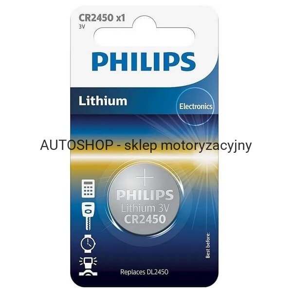 Bateria Philips CR2450 do zastosowań jak kluczyki samochodowe, piloty, wagi, urządzenia medyczne, urządzenia systemów inteligentnego domu.