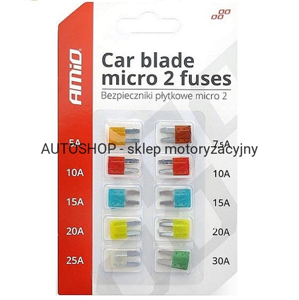 Zestaw bezpieczników płytkowych typ MICRO 2 AMIO 10szt.