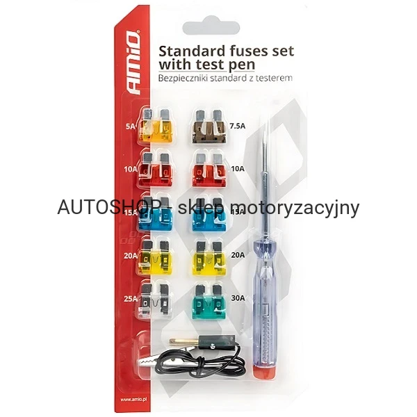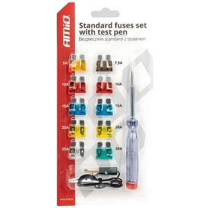 Zestaw bezpieczników płytkowych Standard z testerem napięcia 10szt.