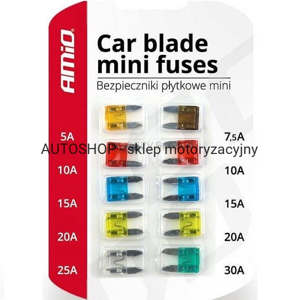 Zestaw bezpieczników płytkowych typ MINI AMIO 10szt.