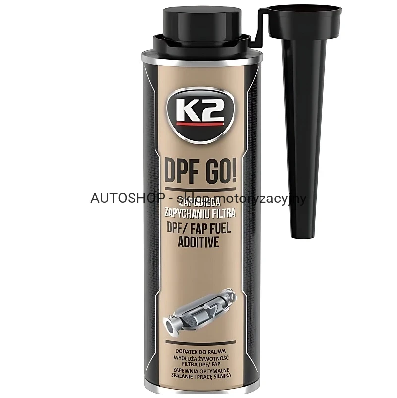 K2 DPF Go! 250ml to dodatek do oleju napędowego, opracowany z myślą o skutecznej ochronie filtra cząsteczek stałych DPF / FAP, którego zadaniem jest wyłapywanie sadzy powstałej podczas procesu spalania we współczesnych silnikach diesla.