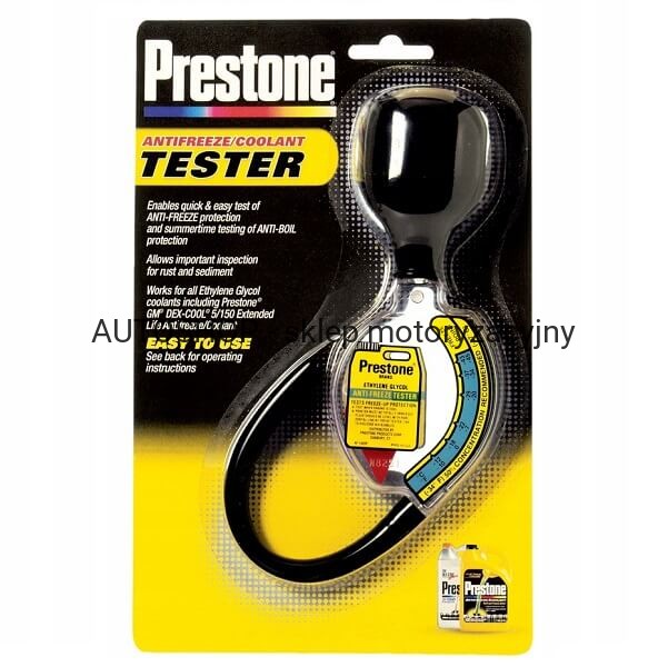 Tester Prestone pozwala na dokładne sprawdzenie parametrów płynu chłodniczego w ciągu kilku sekund. Przy jego pomocy możemy określić temperaturę zamarzania oraz wrzenia płynu chłodniczego. Przezroczysty zbiorniczek umożliwia kontrolę czystości płynu co pozwala na szybką reakcje w razie wykrycia nieprawidłowości (np. zbyt wysoka temperatura zamarzania płynu). Dzięki regularnym kontrolom układ chłodzenia będzie bezpieczny zarówno zima jak i latem.