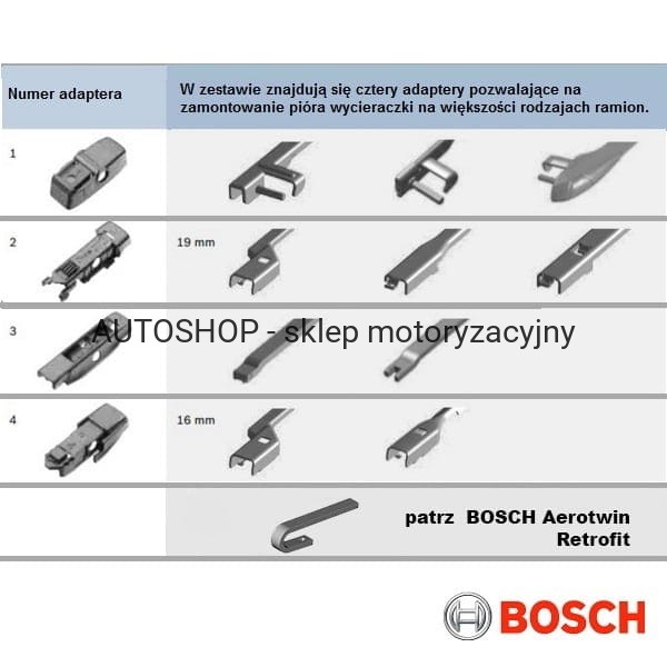 Linia wycieraczek Bosch Aerotwin Plus, jest dedykowana do samochodów które fabrycznie zostały wyposażone w płaskie wycieraczki bezprzegubowe. System Aerotwin Plus obejmuje 15 wycieraczek o długości od 340 mm do 800 mm i 4 adaptery mocujące. Dzięki temu rozwiązaniu każdą z 15 wycieraczek można zamontować na 10 typach ramion. Montaż jest wyjątkowo prosty wystarczy znać długość piór w swoim samochodzie, korzystając z instrukcji na opakowaniu wybrać odpowiedni adapter i wycieraczki gotowe do założenia. Prostota mechanizmu adaptera umożliwia instalowane wycieraczek zarówno przez kierowców, jak i techników serwisu.