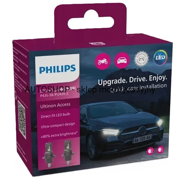 Żarówki Philips Ultinon Access LED zostały zaprojektowane tak, aby oferować lepszą wydajność wiązki światła niż żarówki halogenowe w kompaktowej, uniwersalnej konstrukcji. Wykorzystując najnowsze innowacje w technologii LED, zapewniają taki sam strumień świetlny jak standardowe żarówki halogenowe z homologacją ECE, ale znacznie poprawiają wydajność wiązki światła przy mniejszym zużyciu energii. Dzięki zwiększeniu jasności nawet o 80%*, żarówki Philips Ultinon Access LED zapewniają kierowcom lepszą widoczność na drodze, ułatwiając dostrzeganie przeszkód i bezpieczniejszą jazdę.